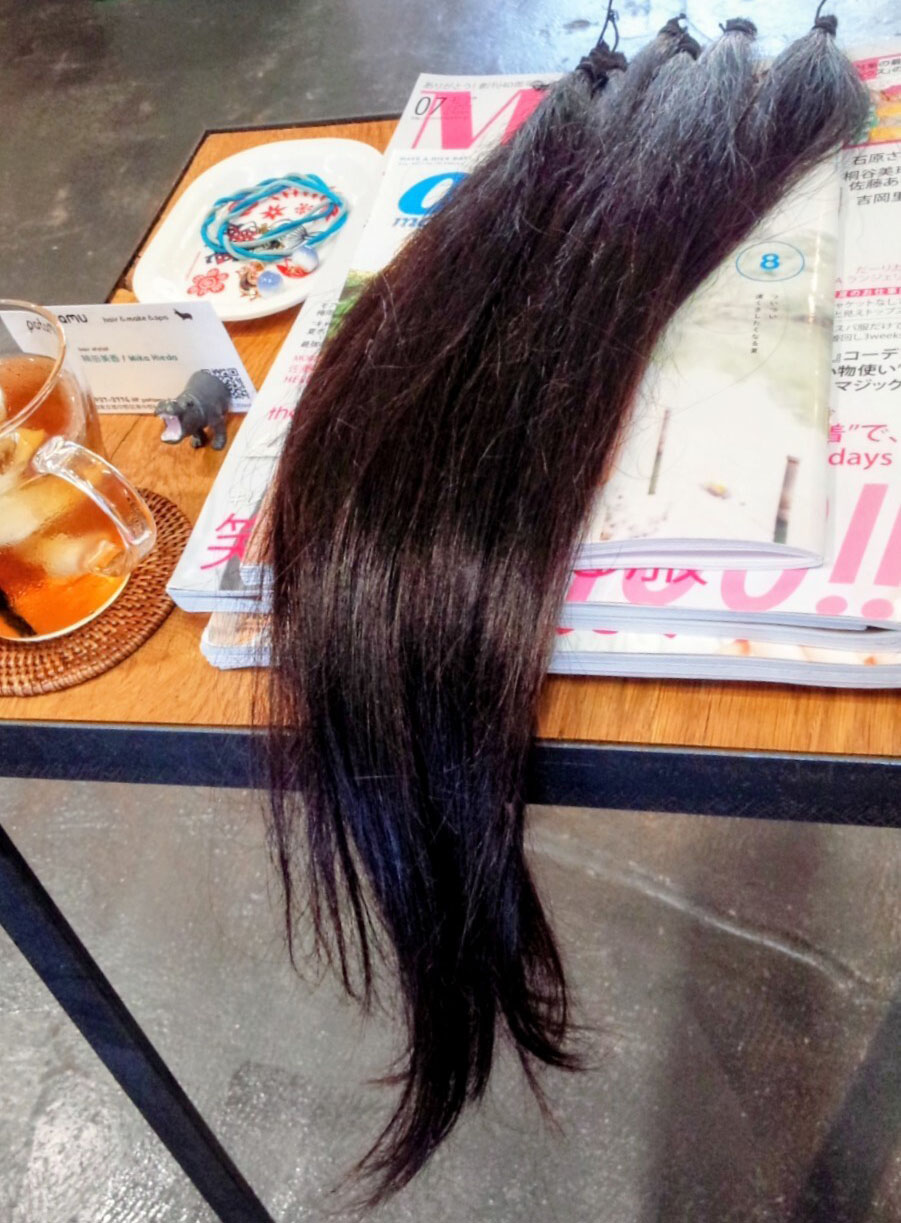 条件の厳しい団体もあるようですが、軽く引っ張っただけで切れてしまうような極端なダメージがない限り、年齢・性別・国籍は関係ありません。白髪やカラーリングした髪、パーマした髪でもOKな団体はありますので、もし31センチ以上カットする予定のある方は、ぜひヘアドネーションを検討していただきたいです(医療用ウィッグ製作には31センチ以上が必要ですが、それ以下でも受け付けている団体はあるようです)。私はこれまでに31センチと40センチを寄付してきました。現在はロングウィッグが作れる長さの50センチを目指して伸ばしている最中です。