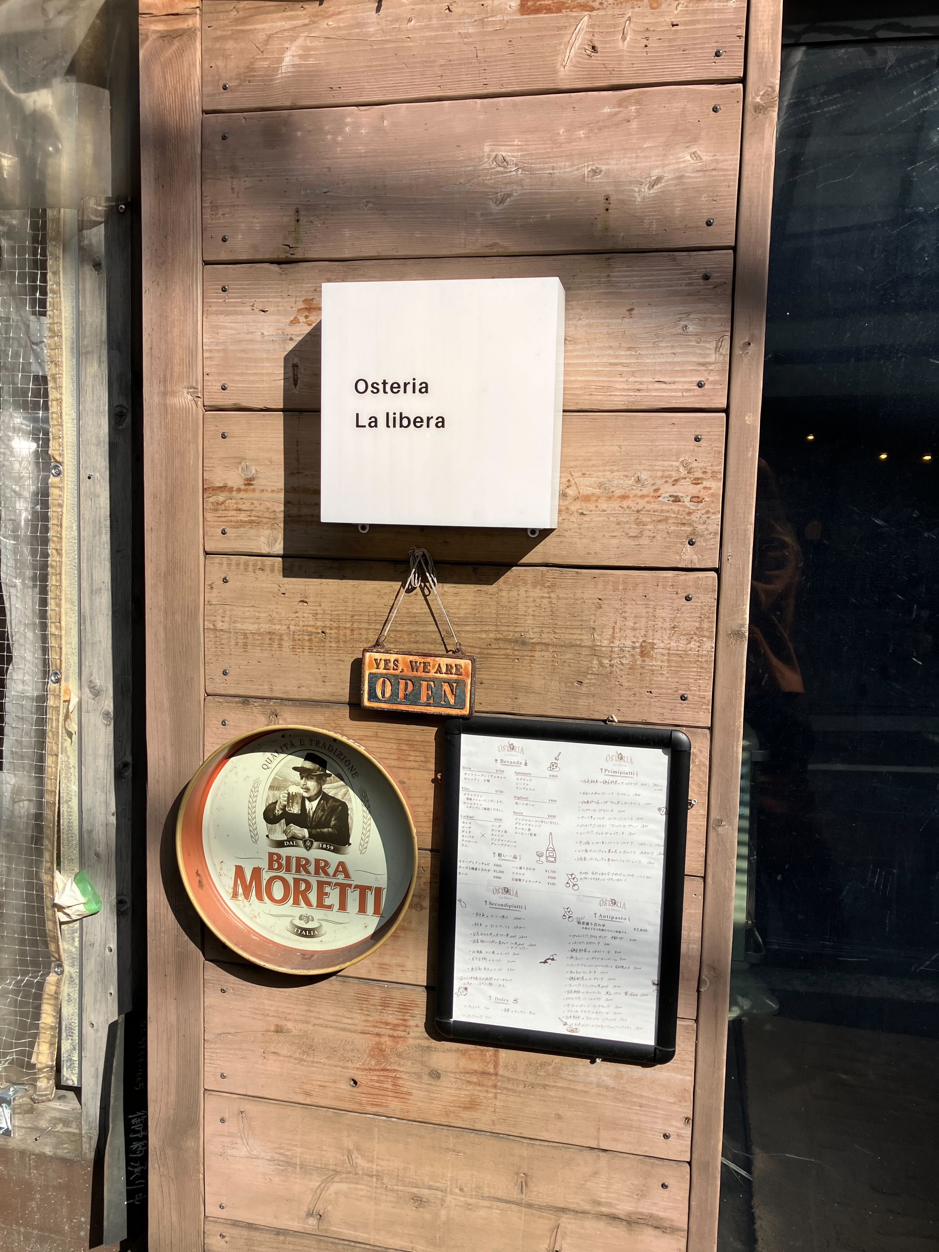 「オステリア・ラ・リベラ(Osteria La Libera)」というお店です。 恵比寿駅の西口から徒歩3分ほど歩き、賑やかな駅前を少し抜けた場所にある、大人の隠れ家のような雰囲気が素敵です。